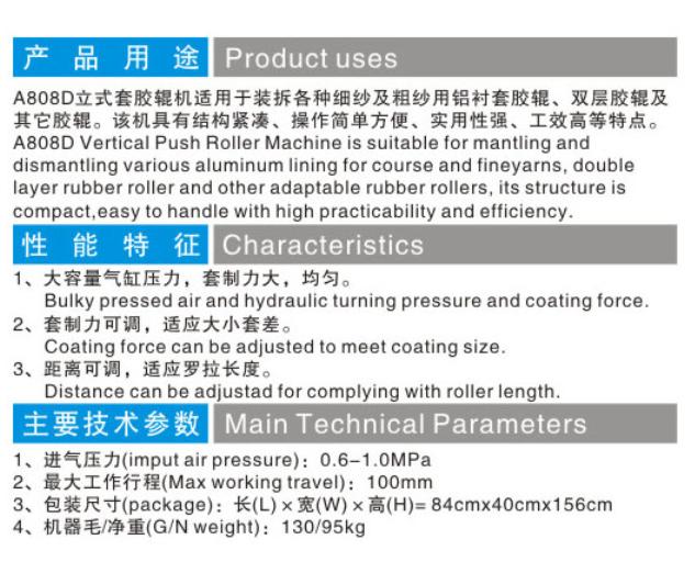 A808D型氣壓套皮輥機(jī)(可套鋁襯套)的產(chǎn)品詳細(xì)介紹: