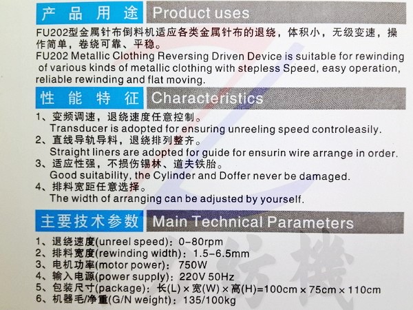 FU202型金屬針布倒料機的產(chǎn)品詳細介紹: